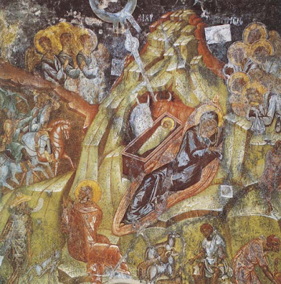 Η γέννηση του Χριστού - Τοιχογραφία στη νότια πτέρυγα της Παντάνασσας Μυστρά